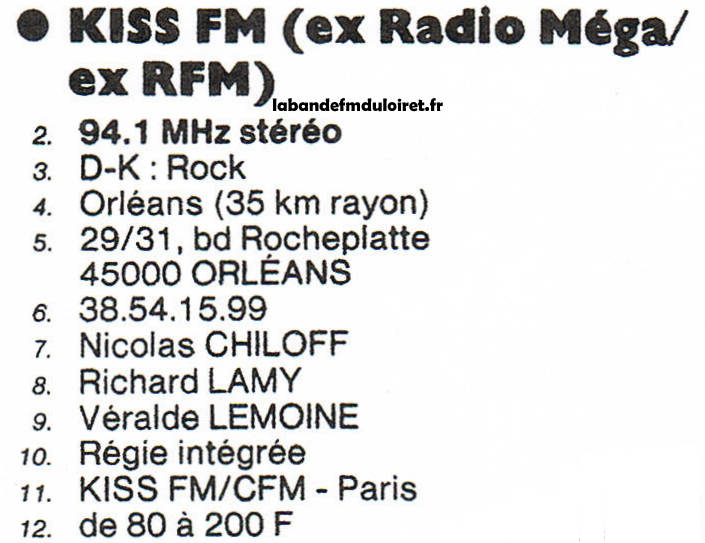 avec le tampon KISS FM Orléans (en haut a gauche).